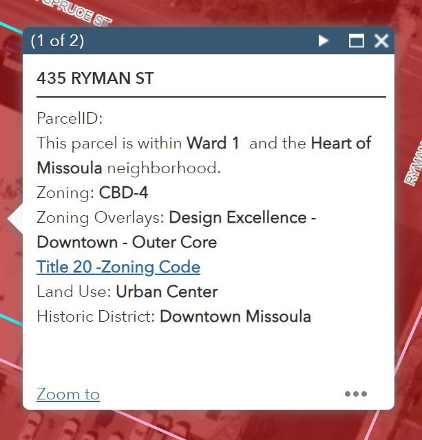 - The Place Type assigned to the parcel will appear after "Place Type:". More information about your parcel’s assigned Place Type can be found in the Our Missoula 2045 Land Use Plan.
